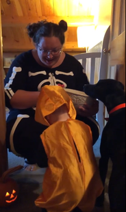 After taking a few photos outside, we headed back inside and prepared to trick-or-treat. Due to the pandemic and the fact that Jack is only 1, we chose not to go trick-or-treating to other houses. But we did trick-or-treat in the house. We lit our jack-o-lanterns and placed them in front of different doors in the house and Jack went to each door to get treats from each of us. It was so cute and fun!