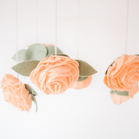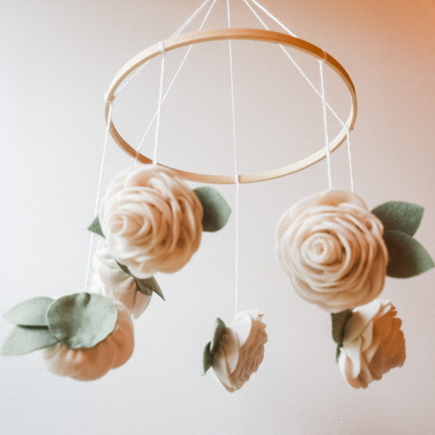 When the pandemic began and the world shut down, I decided to create a mobile for a friend who would be having a baby girl in a matter of months. I asked what their nursery theme was, ordered some felt, and got to work making a mobile of rose-type flowers in coral, and anemones in cream and navy blue. It was another labor of love, and I was overjoyed when they received it and loved it!