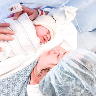 Finally, at 11:15am I heard the best sound I have ever heard, the cry of my sweet baby boy who was completely and totally healthy! I had asked for a clear drape so I could see him come out, and it was the best thing I've ever seen. They cleaned him off, weighed him and checked his Apgar scores, wrapped him in a blanket and immediately layed him on my chest, and I couldn't have been more relieved or in love. After almost having a c-section in the middle of the night, 10 hours of hard labor, and an urgent c-section, our little boy was finally here, safe, healthy, and perfect.